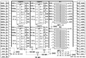 А зачем собственно в наше время адаптер "сети УКНЦ"? Намного полезней его переделать во второй RS232 или еще лучше - поставить туда "мост" ВП1-065 RS232 <-> Ethernet 10/100 аппаратно сделанный так чтобы не пришлось переделывать процедуры из ПЗУ УКНЦ. Или вовсе забить на "сеть УКНЦ", переделать СА в нормальный 57600 RS232 и переписать драйвер, а к нему уже цеплять китайский внешний RS232-Ethernet.