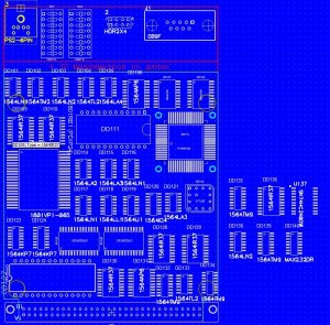 ЦП, ВП1-065, ППЗУ 27С512, ВДМ1-4 3 шт., 62256, 217ЛБ2, разъемы ПС2, ДБ9, СНО53-8, СНП58-64, РС24-7, ИР37, АП6 и АП3, КР142ЕН5А, светики 3 миллиметра на длинных выводах.
