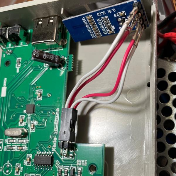 У меня более новая версия Готека на ARM, с ней экран тоже работает. Распайка джампера J7 такая же, как у прошлых версий Gotek. На верхней крышке корпуса есть пластиковая лапка, к которой можно приклеить экран двусторонним скотчем. Идеально ровно не получится, но зато это самый простой и быстрый способ.