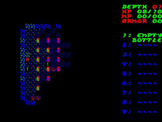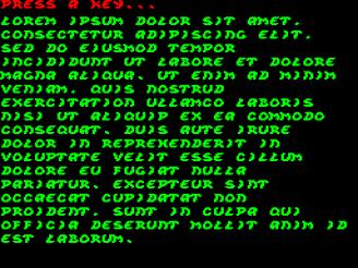 Нарисовал шрифт для текстов. Только заглавная латиница, цифры и символы, но больше ничего и не нужно. Карту им выводить нельзя, это выглядит ужасно, но вот для текстов всяко лучше безликого шрифта из ПЗУ. Хотя 17 строк из LOREM IPSUM уже смотрятся тяжеловесно, даже через 1 1/3 интервала.