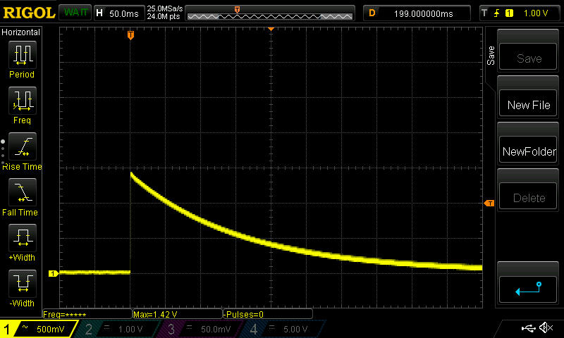 1. Замер произведен на ножке STM, на которой выставляется 1. ШД Микроши отключена, то есть замер именно ножки микроконтроллера STM.
