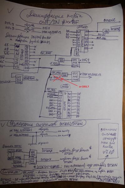 Ага. AT6/AT7/AT8: я так понимаю, AT6/AT7 перепутаны на D11. В спектрумовском режиме (RG0=1) вместо АТ7 подается АТ6, который проходит, как АТ8, на D37.12.