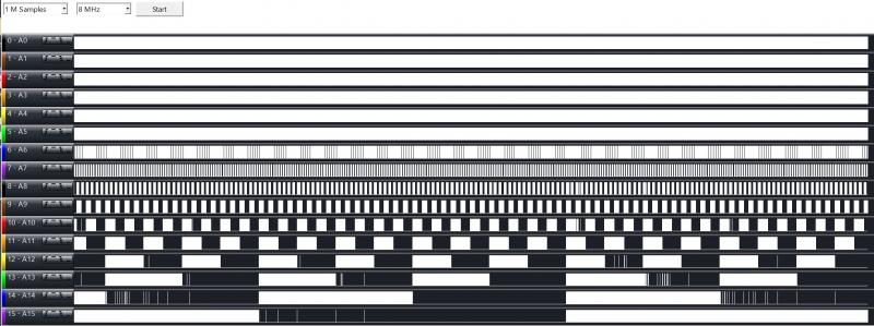 Вот там все плохо. На некоторых линиях адреса и данных жизни не наблюдается. На остальных много мусора и выглядят они довольно странно.