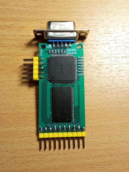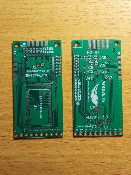 В итоге плата 25х49мм на тех же двух основных корпусах (CPLD EPM3128ATC100, RAM CY7C1041DV33 или аналоги), более удобная для встраивания.