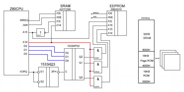 Да, но это первый мой самодельный "компьютер" и хотелось бы не подложить себе грабли таким решением. В наличие чипы SRAM из кэш памяти старых 486 материнок, по з2 килобайта на чип. EEPROM`ы от пней первых мегабитные. Планирую в первых 16кб ПЗУ расположить типа загрузчик-монитор с "драйвером" клавиатуры и дисплея, а в переключаемых страничках уже чего-нить полезное можно хранить. Думаю попробовать реализовать перепрошивку прям "из себя"