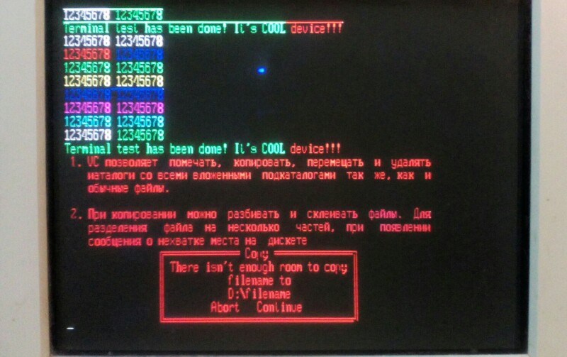 Если наличие доп.банок в ДОС использовать только для данных (не для кода ПО), то это ничем не отличается от ОРИОНА с кучей банок ОЗУ, в котором доп.банки истрачены не на VDISK, а свободны для хранения оперативных данных программ. Например текстовый редактор загружает в ОЗУ излишних банок весь текстовый файл с размером превышающим TPA (минус код редактора), избавляясь тем самым от необходимости дискового свопинга, что существенно ускоряет и сокращает износ дисковода и дискет. Но кто будет сейчас писать такой редактор или иные программы с обработкой больших данных в иных банках? К тому же и без таких наворотов, для обычного TPA в 48 кб уже написан редактор SuperText, в оригинале называемый 'Final Word', и это действительно оказалось "последнее слово", т.к за прошедшие 35 лет никто лучше не сделал.