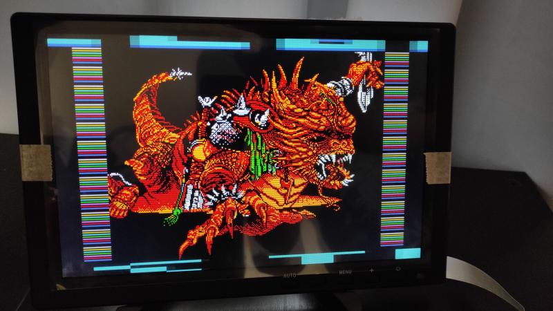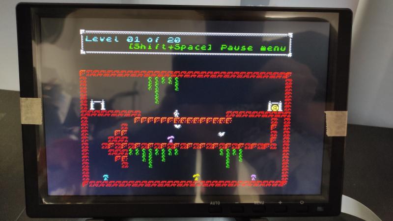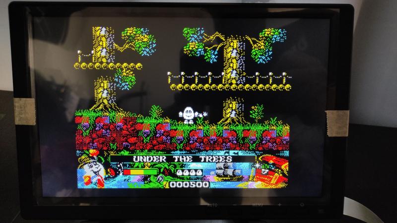 в процессе я решил уже не возиться с родной прошивкой, потому что преимуществ при определении матрицы и масштабированием картинки там не оказалось (я надеялся включить обрезанный 1280x960 на 1280x800, чтобы не куралесить с "растянутыми" под 16:9 видеорежимами , но не вышло). более того, я разобрался в кастомной прошивке и переписал процедуру определения видеорежима под свои нужды - теперь у меня точно переключаются все три пресета VGA-режимов (под 48k, 128k/Next и пентагон). да, картинка вышла не с целочисленным масштабом x4, а чуть меньше, НО! я посмотрел, как она должна реально выглядеть на этой матрице, просто подключив ноут — об такие острые углы пикселей можно глаза поранить — мне больше понравились мои округлые пиксели :) плюс я ещё сканлайны включил на N-Go - получилось ещё "ламповей"
