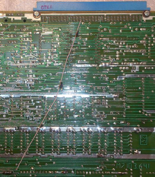 И обратил внимание, что на соседней плате вывод В20 (сип н) отрезан от дорожки прямо возле разъема и перемычкой заведен на D19(вывод34).