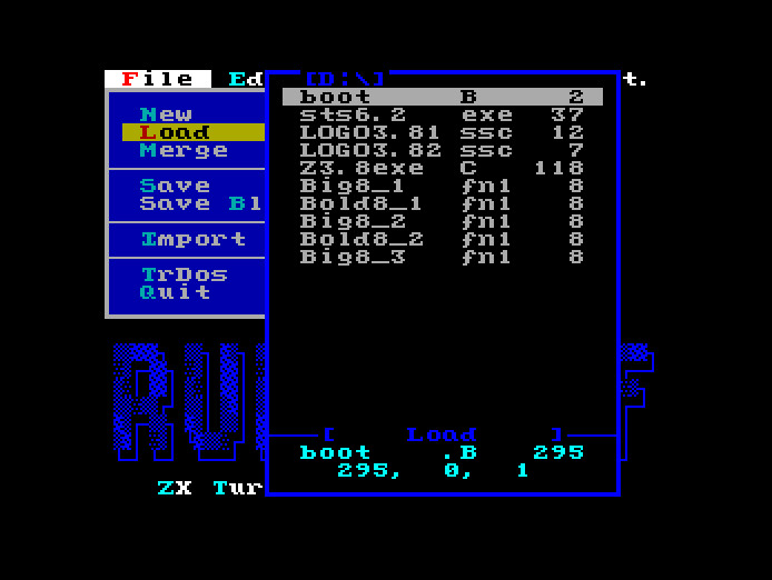 Так же исправлена ошибка, это в ZAsm'е которая записывала один каталог, без 9-го сектора и в Delete Files service.ovl встроена проверка на отрытый .trd.