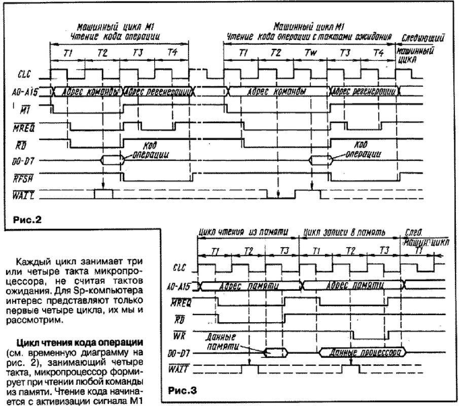 Причем, цикл записи длится значительно дольше (2.5 такта после выставления адреса), чем цикл чтения (1.5 такта после выставления адреса).