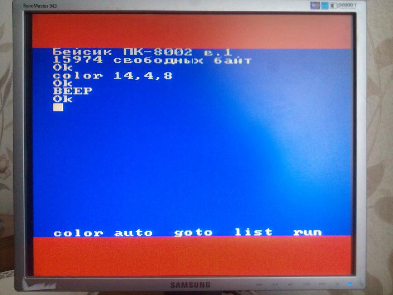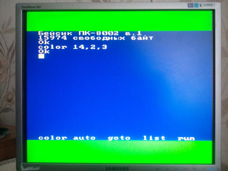 Если потом все же дорабатывать COLOR для SCREEN1, то нужно "свое" программирование РУ2, т.к. вызывать из бейсика 8002 штатный обработчик - не вариант.