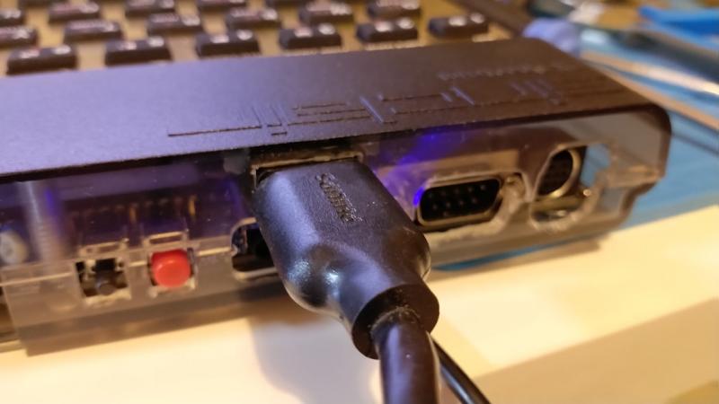 На hdmi-переходнике запаян переключатель разрешения 720-1080 на положение "720", питание 5В взято с ноги JP2.