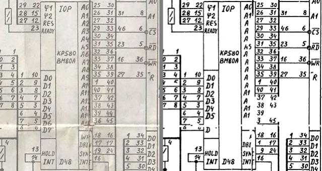 Две 155 ИР1 заменяют одну 589 ИР12, что разумно ради экономии электроэнергии, т.к ИР12 сильно греется. Для режима цвета вместо запрета сдвига в выходном видеорегистре и коммутации из него по 2 бита с помощью КП12 (как я предполагал) разработчики применили защёлкивание двух битов с выхода видеорегистра в два триггера по такту 4 МГЦ, что избавило от необходимости запрета сдвига в ИР1.
