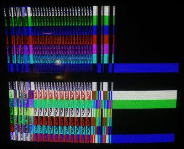Нижняя половина экрана - цветной режим (бигуди покрупнее). Цветов на строчку растра уже заметно больше.