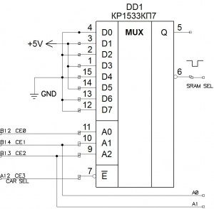 На Звучке будет 3 слота СОЗУ по 8 Кбайт ( Бейсик-картридж поместится ), причем в 2-х банках, коммутируемых тумблером на Звучке.