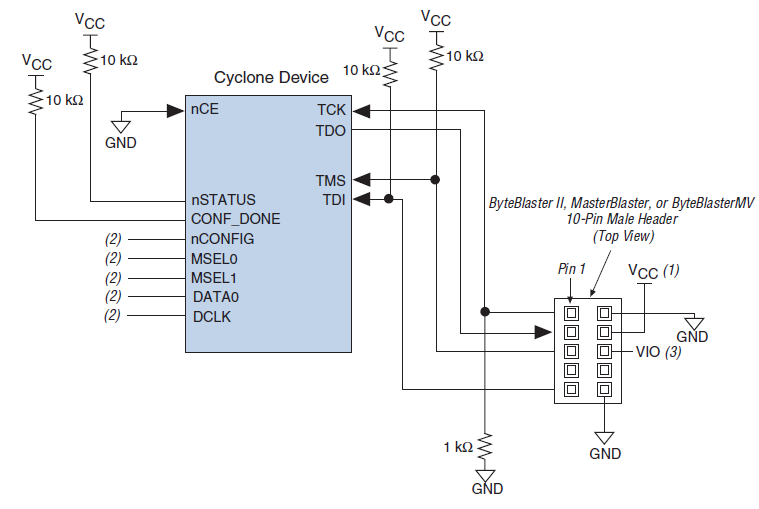 Конечно будет. Чтобы уметь в 10МГц даже 1к подтяжки крайне мало. Токи утечки на выводах JTAG слишком мелкие, чтобы требовать именно 1к (они есть в букваре на МАХ), а бластер имеет пуш-пул на выходах. Подтяжка нужна чтобы наводки не было от чего ТАР начинал бы сходить с ума, так что достаточно задавить ТСК вниз и ТМS вверх.