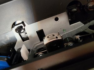 Если вы думаете, что это с плёнки насыпалось возле головки, то нет! Фото сделано ДО того, как вставить в него хоть одну кассеты.