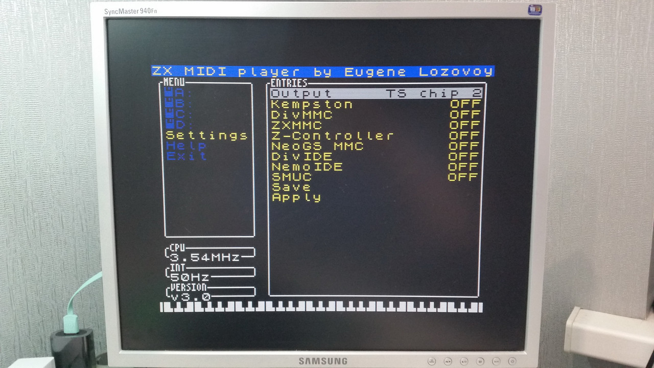 Для корректного вывода Миди-треков в Midi-плеере от Евгения Лозового надо в настройках указать Output - TS chip 2.