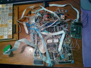 Ок. ну вобщем предысторию все знают - готовый ЛИК, в готовом корпусе, с готовой платой расширения, заточенной под этот корпус. поставить ее как-то по-другому - не выйдет. с точки зрения длины проводов получилось не слишком оптимально, шину данных пришлось тащить сантиметров на 30. ну да ладно, после того как у меня много лет работало вот это (это первый Ленинград, с приделанными AY8912, контроллером дисковода, 128к и конвертором в VGA) -