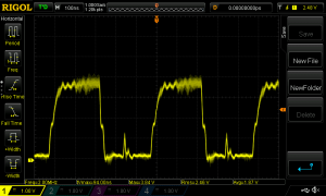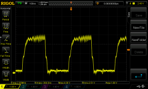 сначала подумал что ошибся с номиналом резисторной сборки на выходах РЕ3, заменил 4.7к на 1к - не помогло. вспомнил что такты на таймер паял последними, отпаял - глюки пропали. отсюда все просто - смотрю сигналы тактирования памяти и на /RAS вижу такое (это с отпаянным клоком таймера, т.е. как оно было изначально без всех доработок)