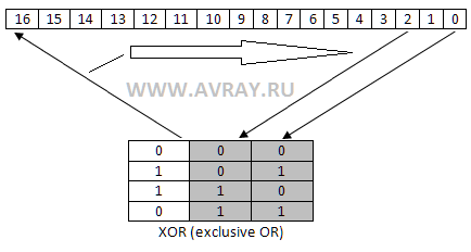 UPD: оказалось это не совсем корректно, по последним данным нужно двигать значение генератора на 1 бит вправо, затем, если вытолкнутый бит равен единице, то сигнал шума становится равен единице (иначе нулю) а значение генератора ксорится с 0x14000