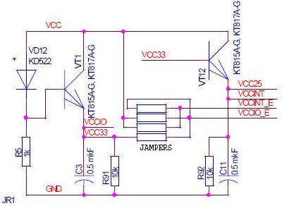 В JTAG-режиме на контакт VCCIO должно быть подано напряжение ис-точника питания 2,5 В или 3,3 В.