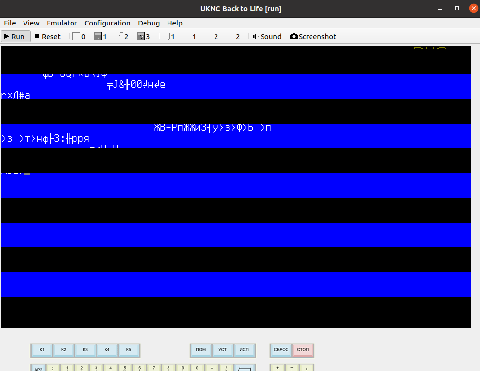 1. в эмуляторе вставьте - https://pdp-11.ru/mybk/pdp11/uknc/HOV-001.DSK в MZ0, http://archive.pdp-11.org.ru/ukdwk_a...rey_05_fix.dsk - в MZ1, ИТО 90 в MZ2