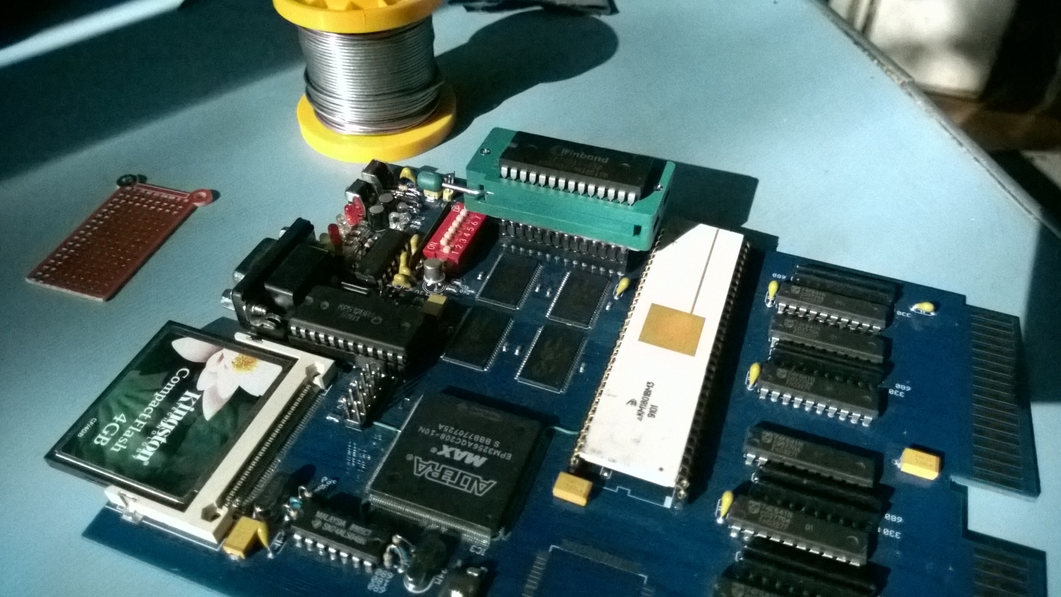 Честно сказать - намучился я с ним прилично. Сначала не мог его заинитить - собирал по всему инету последовательность инициализации, включая какие-то китайские борды, форумы андруинщиков, github - нет инита и всё. А дело было всего-лишь в перепутанных проводах к экрану D6 и D7 - просто воткнул неправильно пины. Потом начал ловить какие-то внезапные перезагрузки прошивки, сделал даже "шагатель" по классике из журнала Радио, хотя он мне мало помог. Короче дело было в том, что на плате у меня на процессоре перепутаны адресные линии A14 и A12 местами, поэтому когда прошивка выросла код улетал в неведомые дали. А распиновку 8080 я взял похоже просто в гугле забив "8080 pinout", и первая подвернувшаяся картинка оказалась неправильной. Ладно, исправил парой проводков МГТФ и все уже поехало как надо.