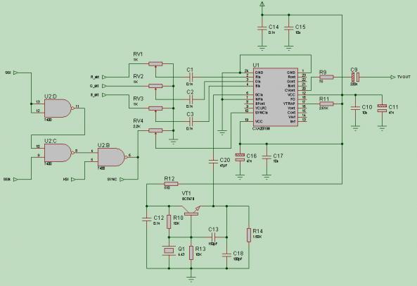 - Т.к. по даташиту вход синхроимпульсов на CXA2075m соответствует ТТЛ-уровням, поэтому подстроечное сопротивление RV4 тоже можно исключить.