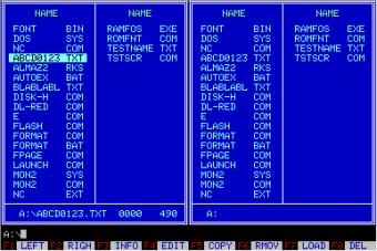 Прикрутил запуск RKS файлов, как в Рамфосе vinxru, Monitor2.sys взял оттуда же. Запуск сделал через механизм NC.EXT - назначение расширению RKS обработчика (отдельной программы-загружалки). Но всё равно пришлось лезть в код Коммандера, иначе он не хотел запускать RKS с любого диска (файл NC.EXT должен быть на том же диске, что и запускаемый RKS - думаю, это или баг, или недоработка; в исправленной версии достаточно одного A:NC.EXT).