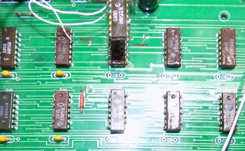 На плате нужно сделать 2 надреза, снизу соединить D23-12 с D43-5. Сверху повесил 155ЛИ1.