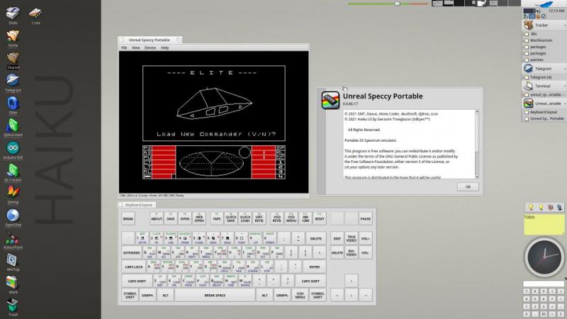 Герасим Троеглазов запушил unreal speccy portable на Haiku Ports, и он уже доступен на HaikuDepot, это полный нативный порт под систему Haiku OS, имеет нативный gui, нативный звук, нативную поддержку геймпадов и джойстиков. Грузит всё что и положено, можно sna, z80, trd и т.д. открывать прям из тракера по клику если зарегать в меню Help файлтипы. Сейчас этот usp является самым навороченным эмулятором среди всех поддерживаемых платформ! Всего было добавлено 150кб кода - полностью нативное окно с меню в котором все функции которые только возможно было заюзать, рендер, фильтры видео, аудиовывод, виртуальная клава, диалог открытия файлов с веба. Теперь можно переезжать в гайку и спектрумить из нее.