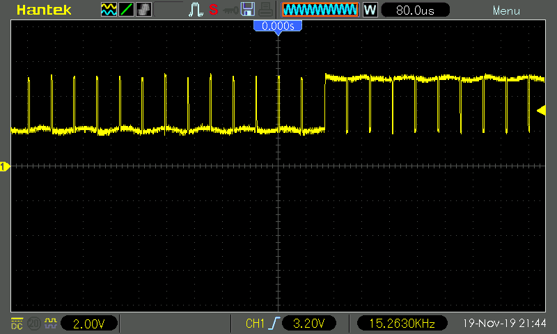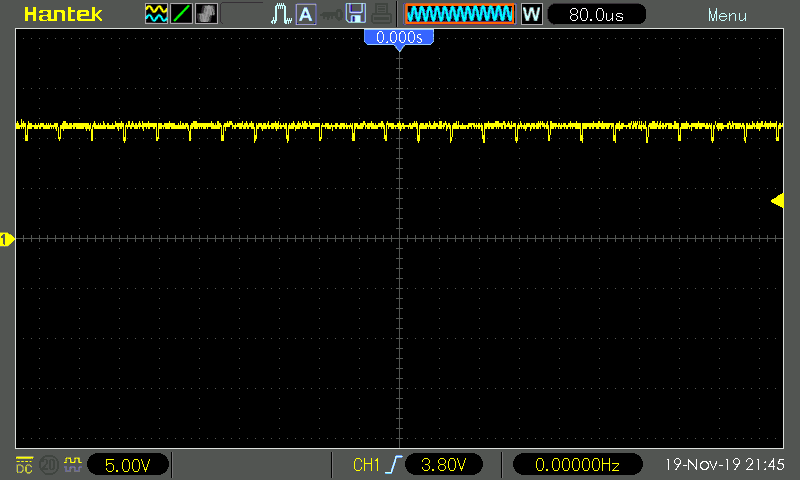 сейчас с новой все F и f в режиме, осциллограммы выглядят прилично, на шине вроде есть деятельность, ресет кажется тоже норм
