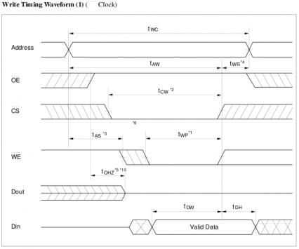 Микросхема CAT71C256L требует tAS > 0 наносекунд и tWR > 5 наносекунд.