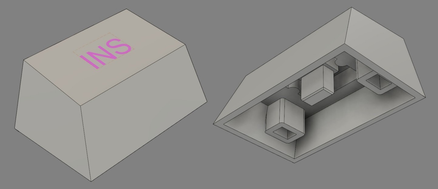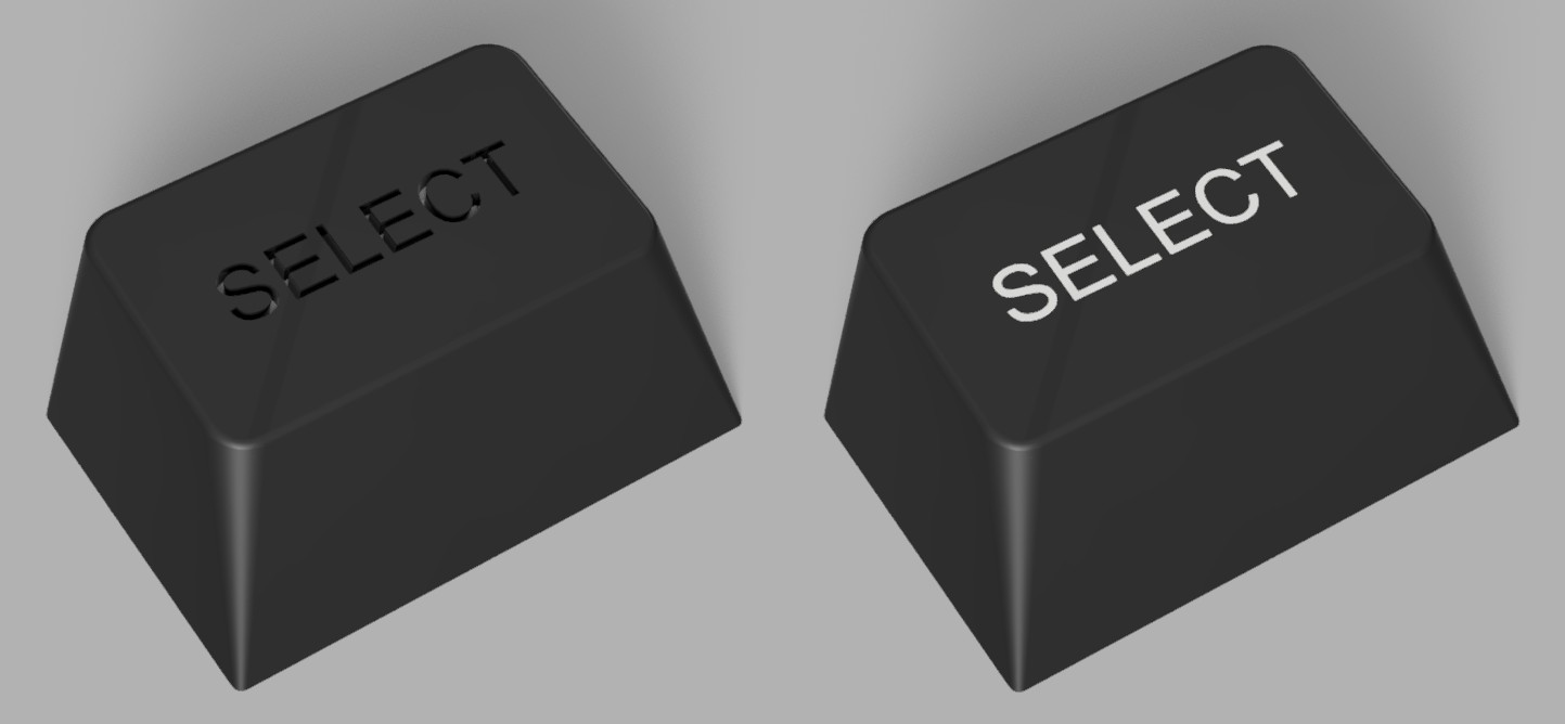 Замечу, что это пока только частично подкреплённые практикой идеи. Исполнение столкнётся с некоторыми трудностями, например буквам, к которых есть внутреннее замкнутое пространство (например В, О, А) придётся это самое пространство заполнять, напечатав мелкие части и приклеив их на внутреннюю часть кнопки перед заливкой смолы другого цвета. А это ещё тот гемор...
