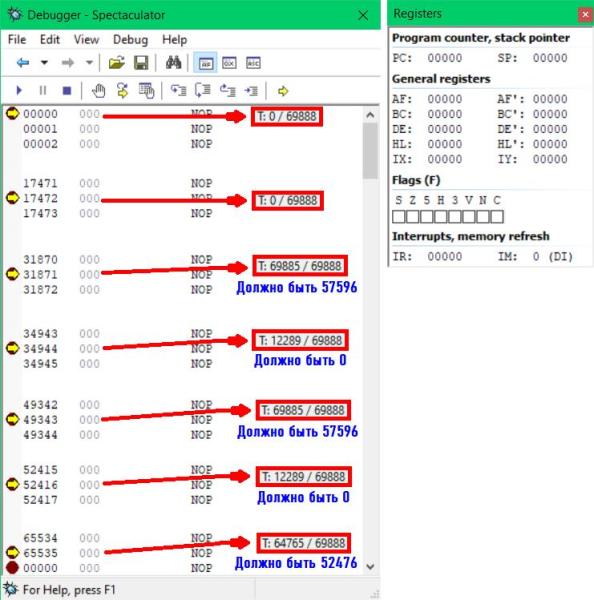 Я даже опыты с обнулением ПЗУ делал и рассчитывал время прохождения кругов по пустой памяти в режиме 3,5 и 7 МГц. И мне кажется, что опыт с музыкой, лишь часть той самой проблемы. Но выходит, она у многих эмуляторов в режиме 48K. Еще бы на десятке эмуляторов проверить этот глюк и на реальном. Подозреваю, что проблемы, скорее всего, в самих .exe файлах эмуляторов. А это только с помощью отладчика, типа OllyDbg ковырять.