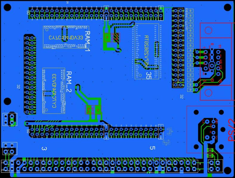 Достаточно удобная для пайки и не дорогая FPGA https://aliexpress.ru/item/4000111664619.html кто бы поспонсировал, чтоб закупится и начать эксперименты, преобразователи уровня, память ещё нужны и сами процессоры конечно же с панельками дип-40, под 64 ногие процы цанговые разъёмы можно использовать. Как писал уже, можно на макетных платах собрать прототип... STM32f105 едет где-то, есть девборда STM32f103 такая же по выводам. Могу, с помощью сообщества, сделать прошивку для FPGA и управляющего монитора на STM32f105, мне это интересно, есть время свободное (до весны точно). В общем плане концепт уже сложился...
