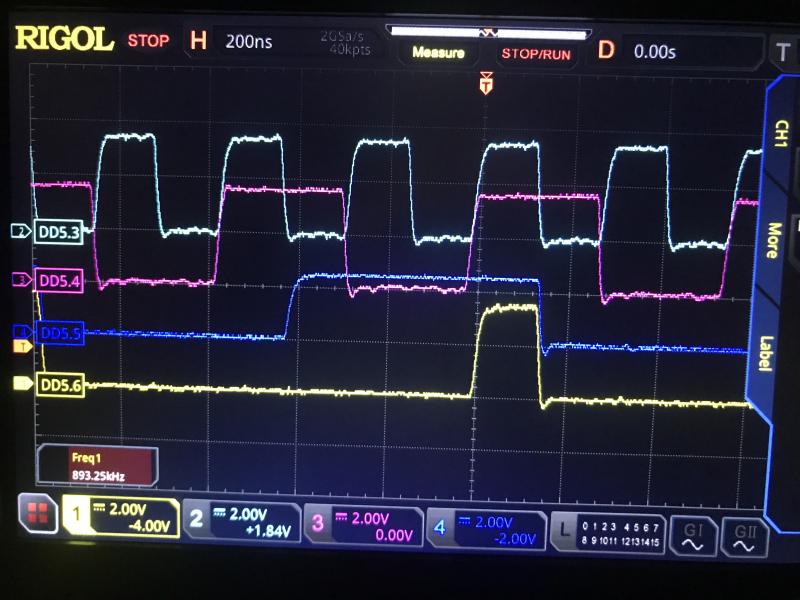 Уровень на DD5.5 совсем не хороший, но правда логика отрабатывает. Кажется где-то подкорачивает. КП2 на входах дают какой-то выход с примерно таким же уровнем. Разбираюсь...