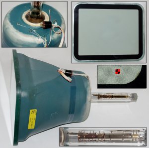 P.S. "уникальный" керамический цоколь намекае, что спаи боросиликатного стекла и Ковара (требуемые для электродов под люминофор, мишень и коллектор) выходили не очень. Т. е. такая ЭЛТ - штука крайне нетехнологичная, дорогая и капризная.