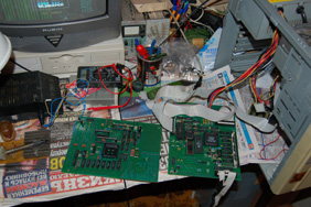 CHRV делает VGA-конвертер. Но он говорит, что на пентагоне вряд-ли будет работать, из-за пресловутых 320 строк на экране. Если встанет вопрос о несовместимости с VGA-конвертером, то придется мне писать прошивку под ПЛИС для экрана в 312 строк. Но тогда теряется совместимость с пентагоном, т.к. в прерывание уже не влезет 71680 тактов, и разные демки, которые на это рассчитаны, будут глючить.Цитата: