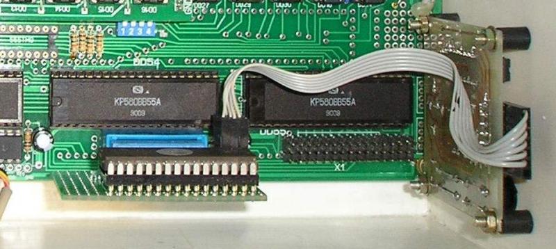 - Сделан DIP-"пустыш" для 32-ногих (т.е. до 27c080 (1Мб х 8) включительно) ПЗУ РОМ-диска около соответствующей ВВ55 + там же "пустыш" для порта 0FEh на 555ТМ9 - для управления страницами ROM-диска.