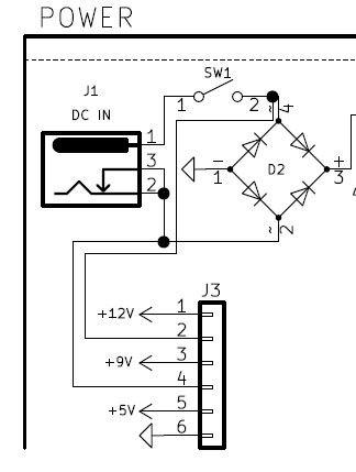 2) Вывод 3 джампера J3 - это ламель А4 ("+9В") шины ZXBUS. То есть в случае использования блока питания 9В, вне зависимости от его полярности, при установке перемычки на выводы 3-4 джампера J3, на ламель А4 ZXBUS поступает +9В. Если блок питания 12В, то этот джампер ставить нельзя, чтобы на А4 не попало 12В вместо 9В, но тогда периферия, зависящая от наличия на А4 напряжения 9В, не будет работать? Разве что на периферии будет стоять понижающий преобразователь, которому будет всё равно, что на входе, 9 или 12?