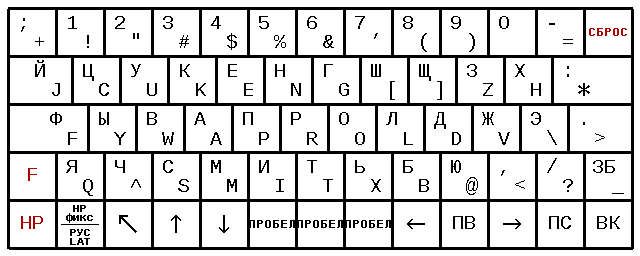 (надписи в реале немного отличаются, напр. "ВК"-"ENTER", "ПС"-"LF",...)