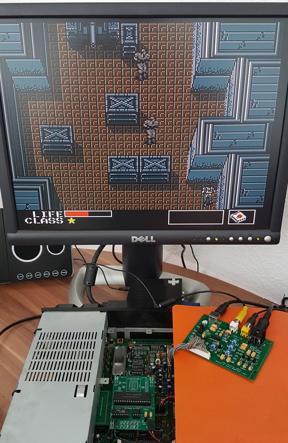 Похоже, что "волны" на экране игры Zanac-Ex - это косяк китайского RGBS-to-VGA конвертора. На S-Video и композитном видеовыходе такого нет. В общем, проект завершён и осталось написать доку по апгрейду.