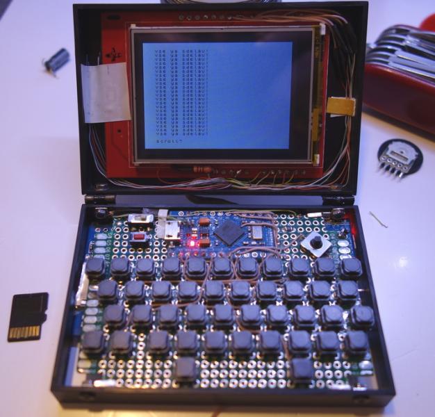 Вся штука, толщиной 17мм, включает ВСЁ кроме клавы. Конвертер любое-в-3.3в, динамики, усилитель.