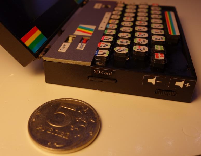 Ну и повторюсь, это полностью рабочий qwerty спектрум 128) микро лаптоп. Ширина 9см. Полностью. Со всеми кучами нажимаемых крутых кнопок стерео колонками итд))