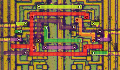 Вячеслав уже перефотографировал чипы, пока Алексей сводит их отдельные кусочки в панорамку, предлагаю размяться и расшифровать одну интересную ячейку
