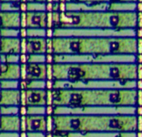 2. Столбец 17 - это переход к новым блокам, ура! Долой однообразие! Куча элементов, очень плотное размещение. Наконец-то идет сведение множества сигналов в итоговые блоки принятия решений. Также появился элемент, который никогда до этого не встречался ни в одном из чипов. Это 2ИЛИ, 2ИЛИ, 2НЕ с дополнительным входом OE.