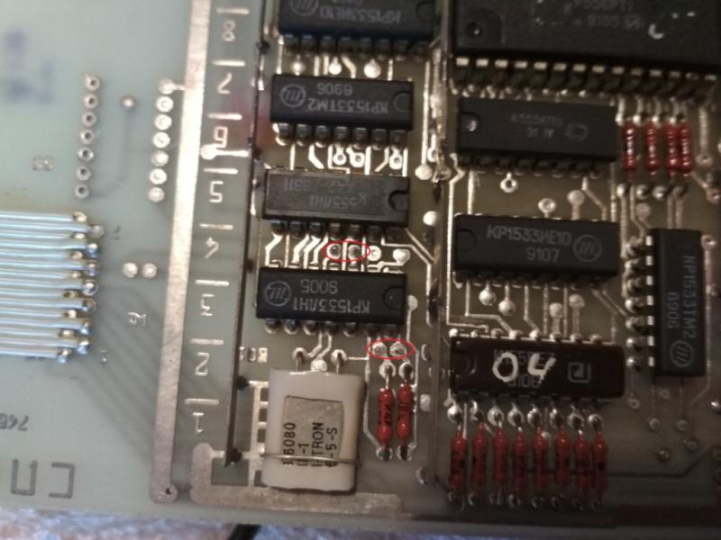 На сколько я понимаю - скрин с выхода ТМ9 должен идти на10 й вывод мультиплексора КП11 (D9), отрезанный от земли.