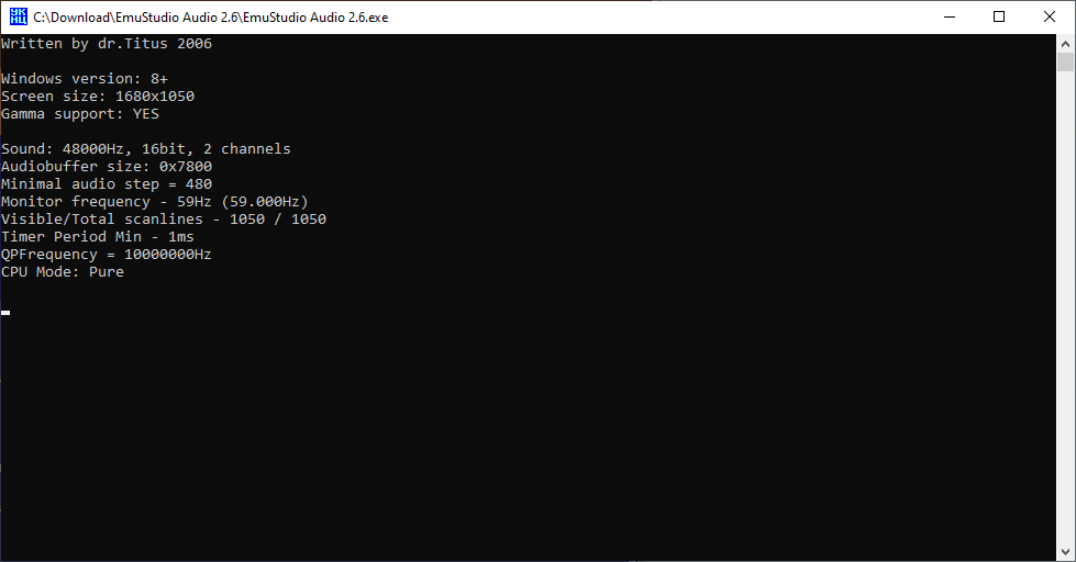 2) На части систем Vista+ синхронизация хорошая, а на части огрублена до 480 отсчетов, в связи, видимо, с особенностью реализации конкретных драйверов. Даже не смотря на подобную огрубленность можно синхронизироваться точно, но для этого понадобятся минуты, а то и десятки минут, пока частота не будет вычислена маскимально точно. Иными словами первые 5-10 минут работы эмулятора возможны артефакты в звуке, а уже позже все становится идеально.